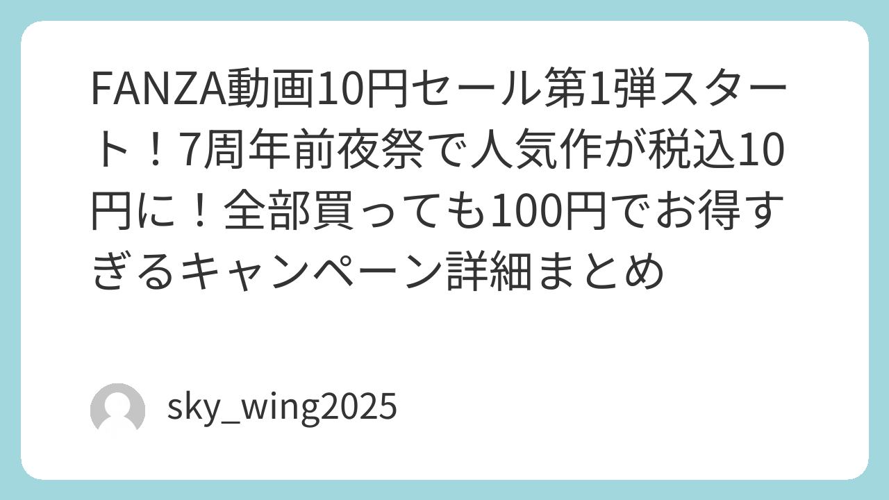 FANZA動画10円セール第1弾スタート!7周年前夜祭で人気作が税込10円に!全部買っても100円でお得すぎるキャンペーン詳細まとめ
